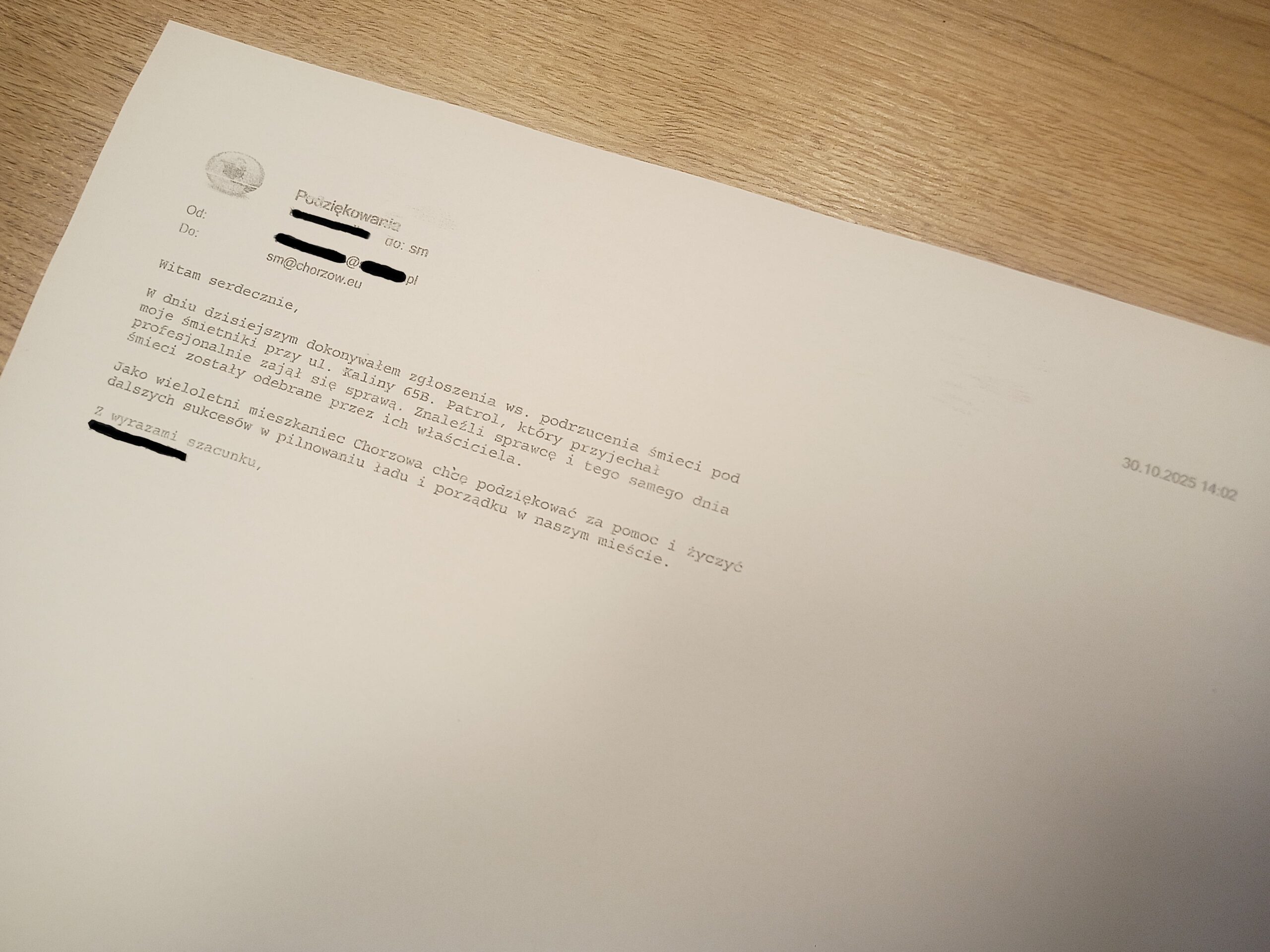 W dniu 30 Października na Naszą skrzynkę e-mail dotarły podziękowania dla patrolu, który podjął interwencję przy ulicy[…]