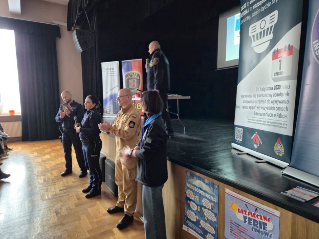 Bezpieczne Ferie 2026 https://sm.chorzow.eu/bezpieczne-ferie-2026/ https://sm.chorzow.eu/bezpieczne-ferie-2026/#respond Tue, 10 Feb 2026 11:32:50 +0000 https://sm.chorzow.eu/?p=3695 W dniu 09 Lutego Straż Miejska we współpracy z chorzowska Policją, Strażą Pożarną oraz Powiatową Stacją Sanitarno -Epidemiologiczną rozpoczęła cykl spotkań edukacyjnych dla chorzowskich uczniów klas 3, których celem jest podniesienie świadomości najmłodszych w zakresie szeroko rozumianego bezpieczeństwa w czasie trwania ferii zimowych. Zajęcia odbyły się w MDK „Batory” i zgromadziły 238 dzieci wraz z […]
