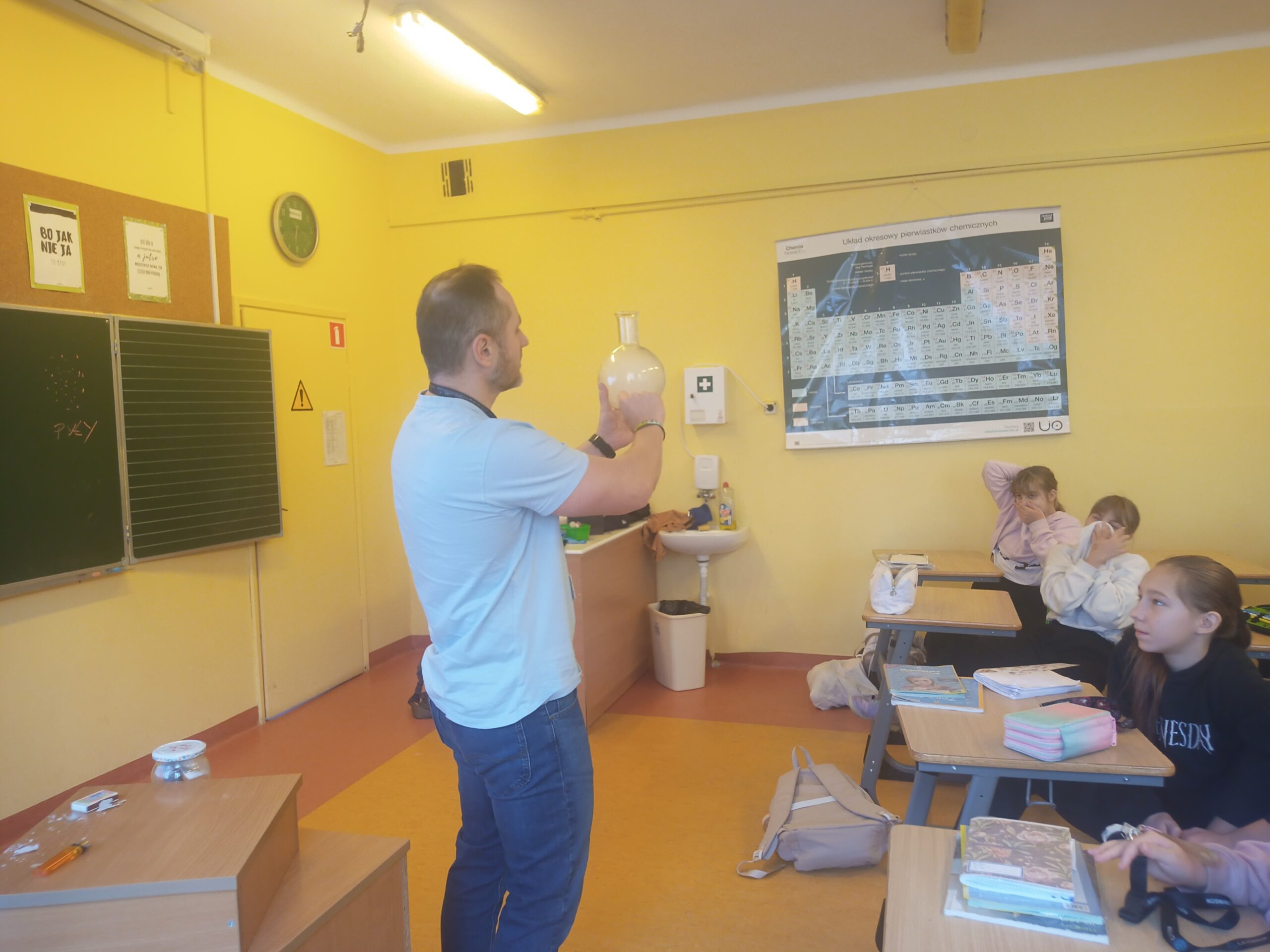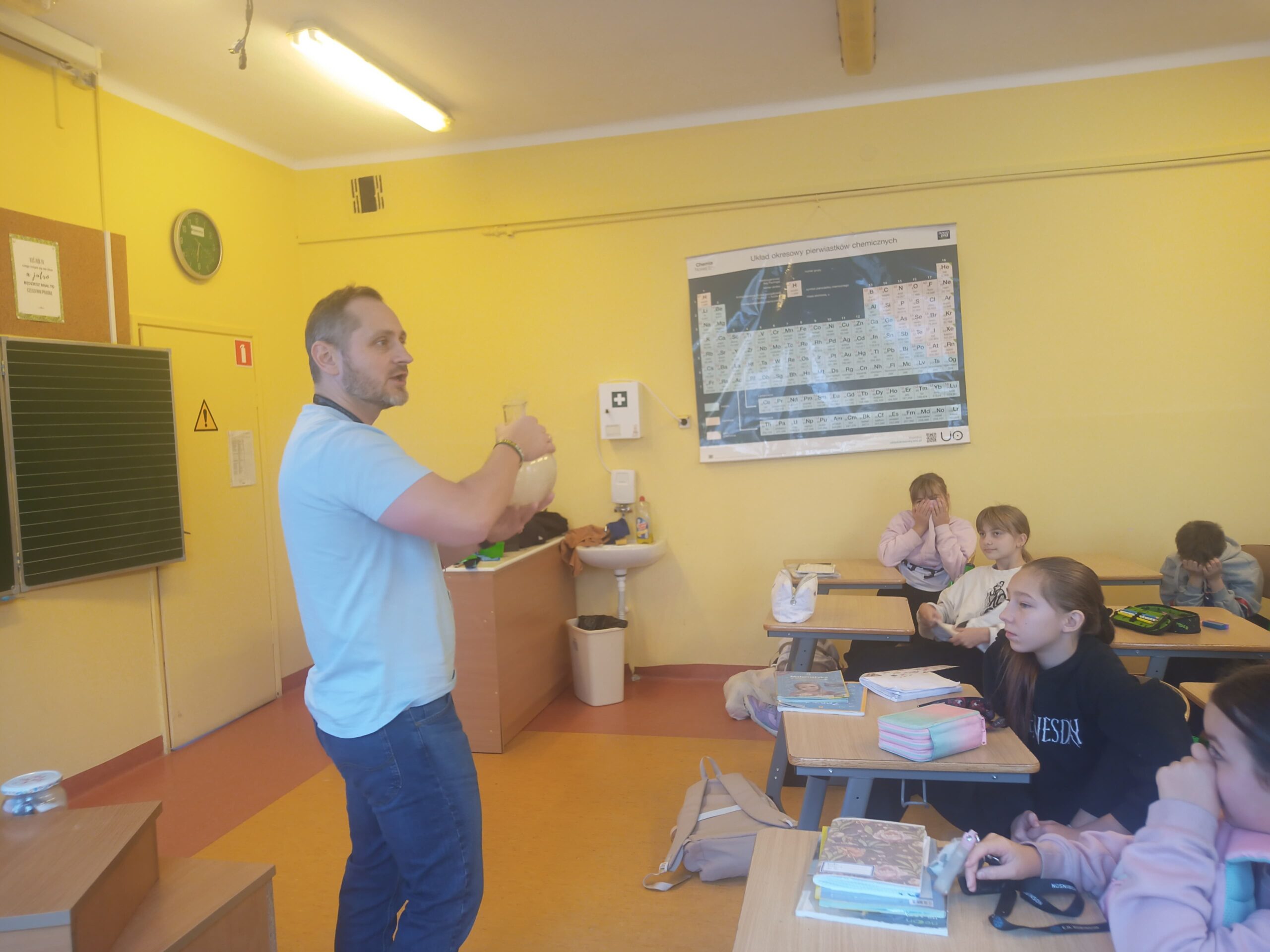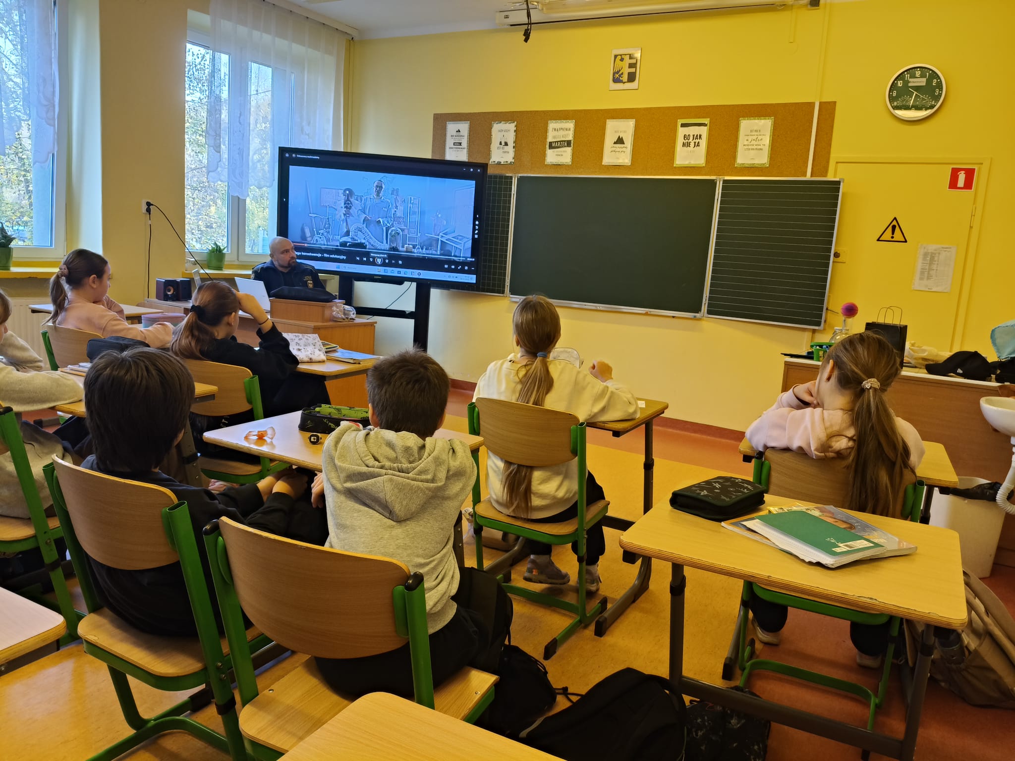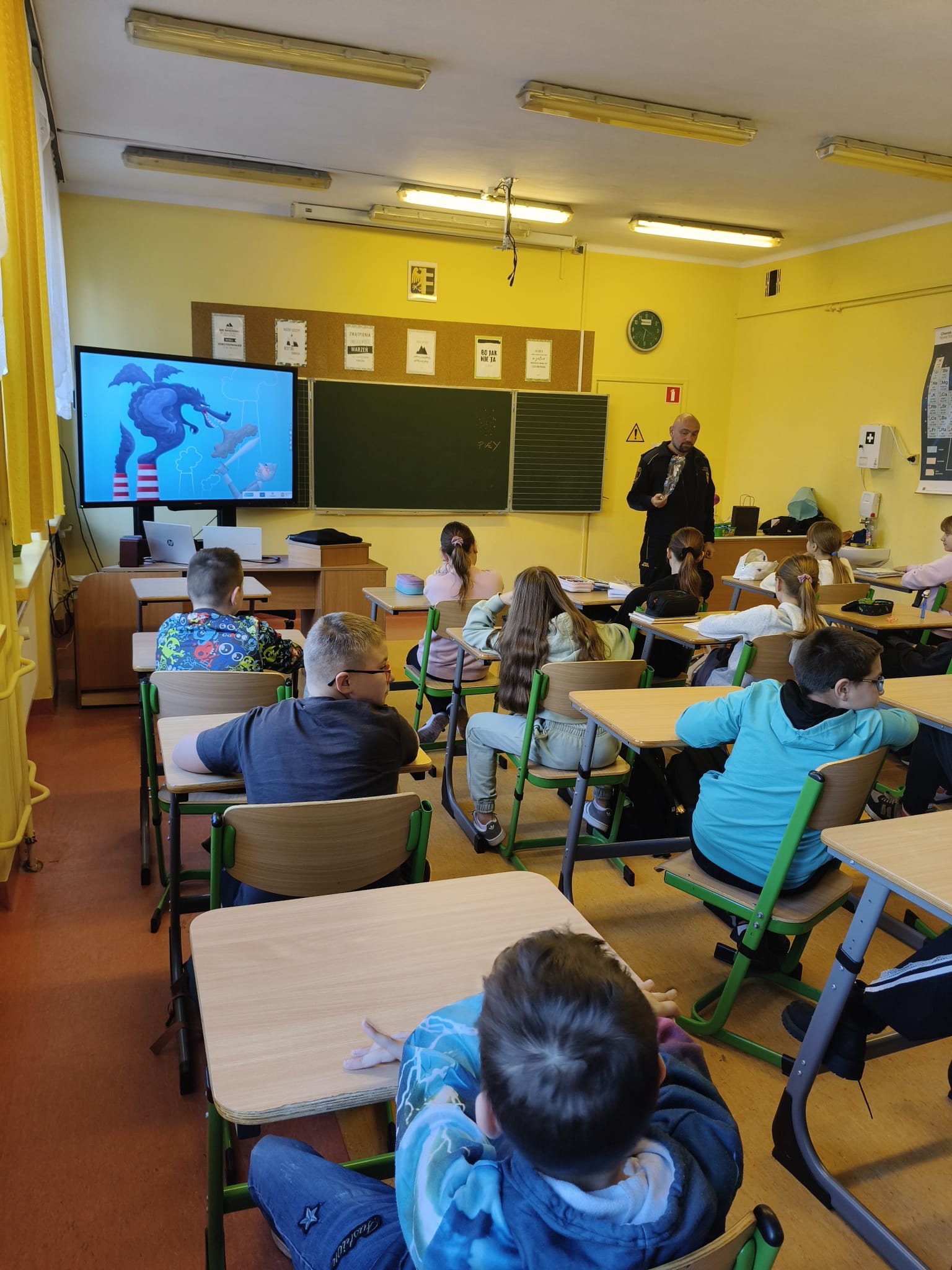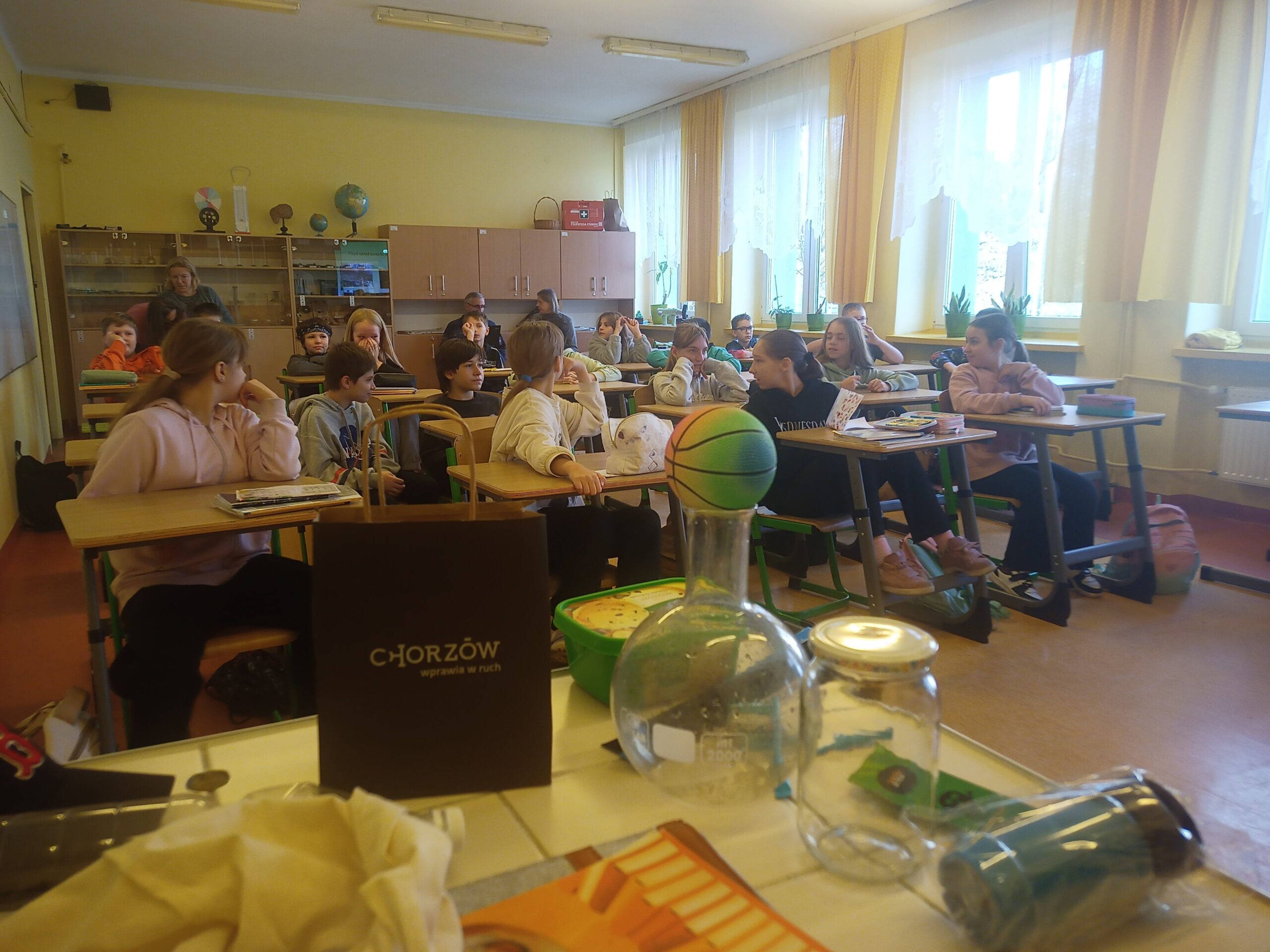 W dniu 30 Października chorzowski Ekodoradca wraz strażnikiem miejskim przeprowadzili zajęcia edukacyjne w SP 14 przy ulicy Podmiejskiej poświęcone jakości powietrza oraz w jaki sposób zanieczyszczenia trafiają do atmosfery.